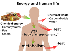 Energy, in respect of food, means the amount of energy made available to a persons body when the chemical constituents of the food, including protein, fat, carbohydrate and alcohol, are metabolized following ingestion of the food by the person. It is measured in calories. (1)