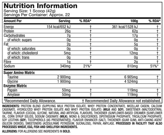 Typical Nutritional Content Per 100g